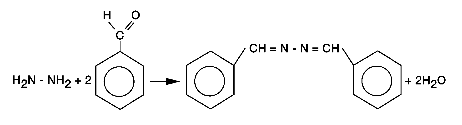 Pour être analysée, l' Hydrazine nécessite une dérivation après piégeage avec du benzaldéhyde selon la formule suivante: